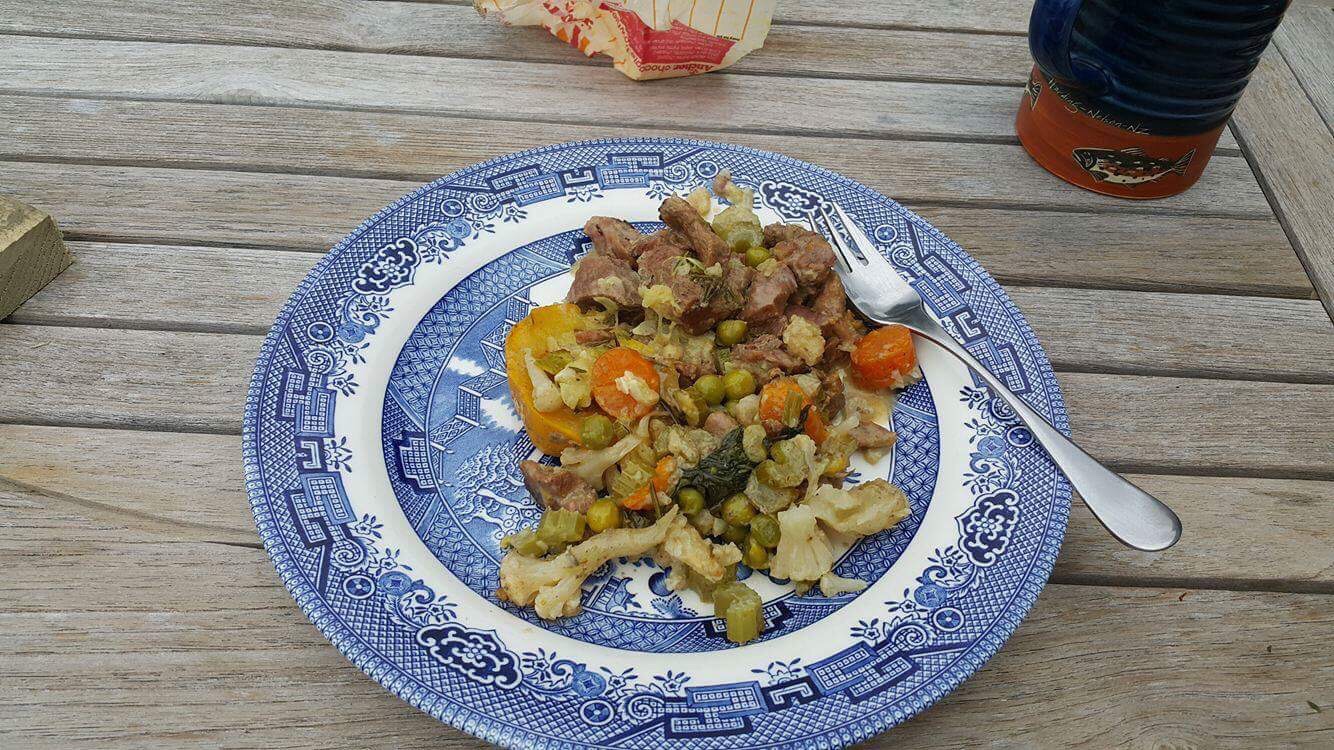 Here is some of the wild goat stew I made and below is an indication of the amount of smoke and firewood i used to cook the whole meal ( it actually took less wood then shown )